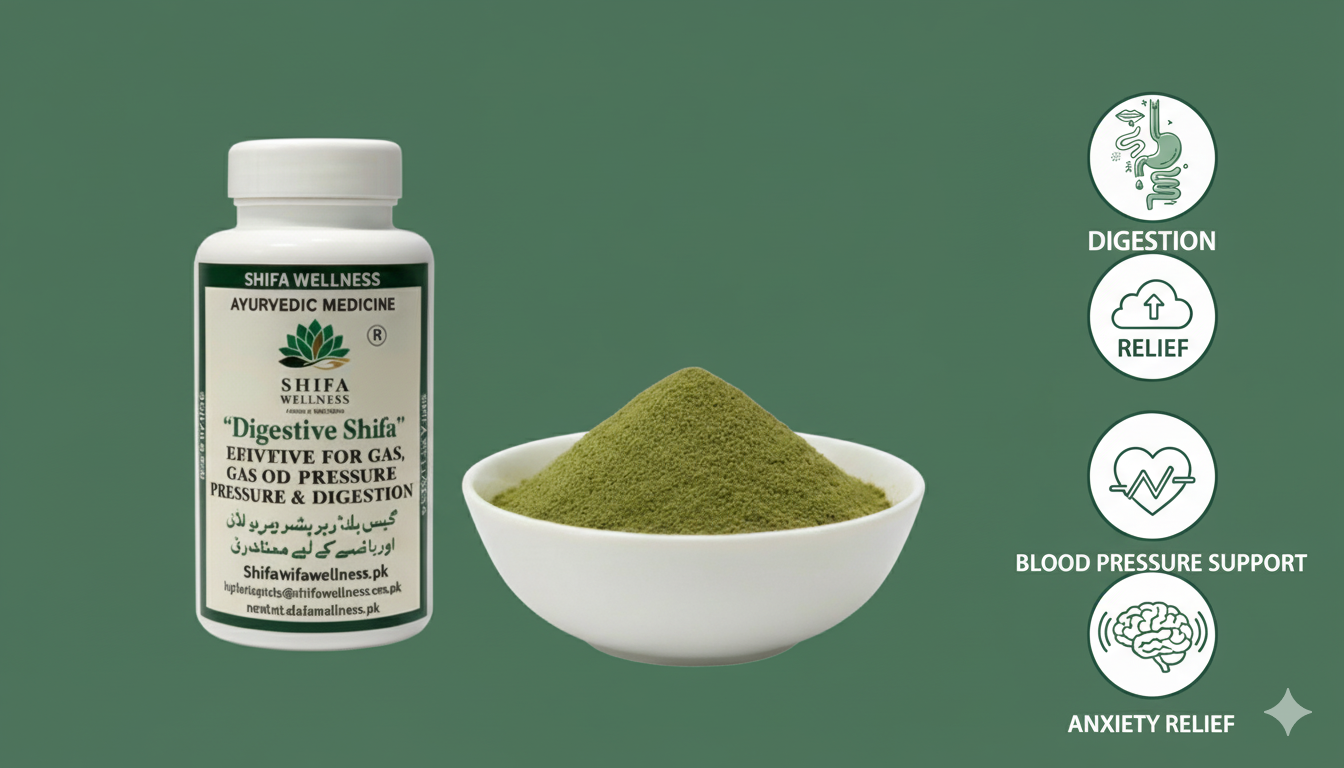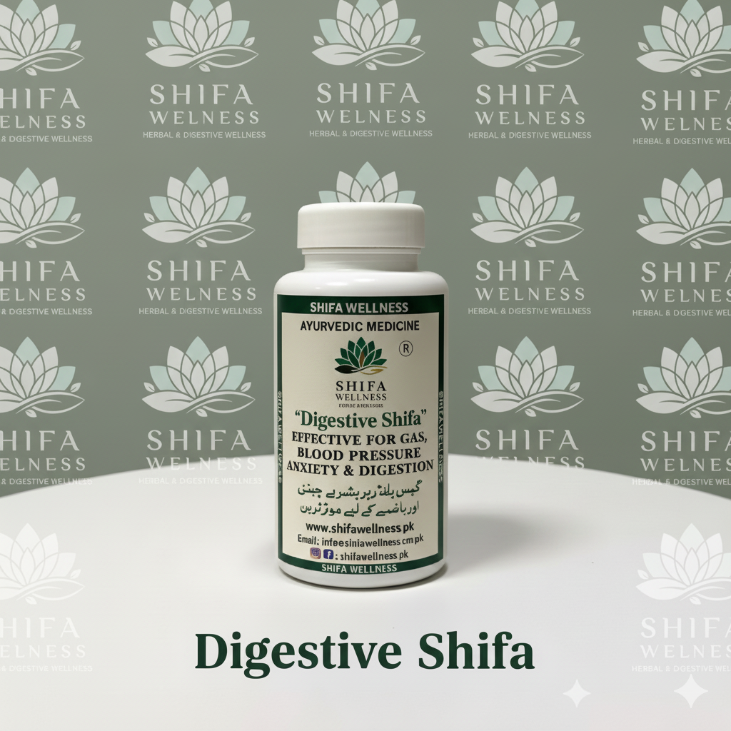 Digestive Shifa is an Ayurvedic formulation known for its beneficial effects for digestive problems, gas, acidity, hand & leg burning, spots by blood impurities,